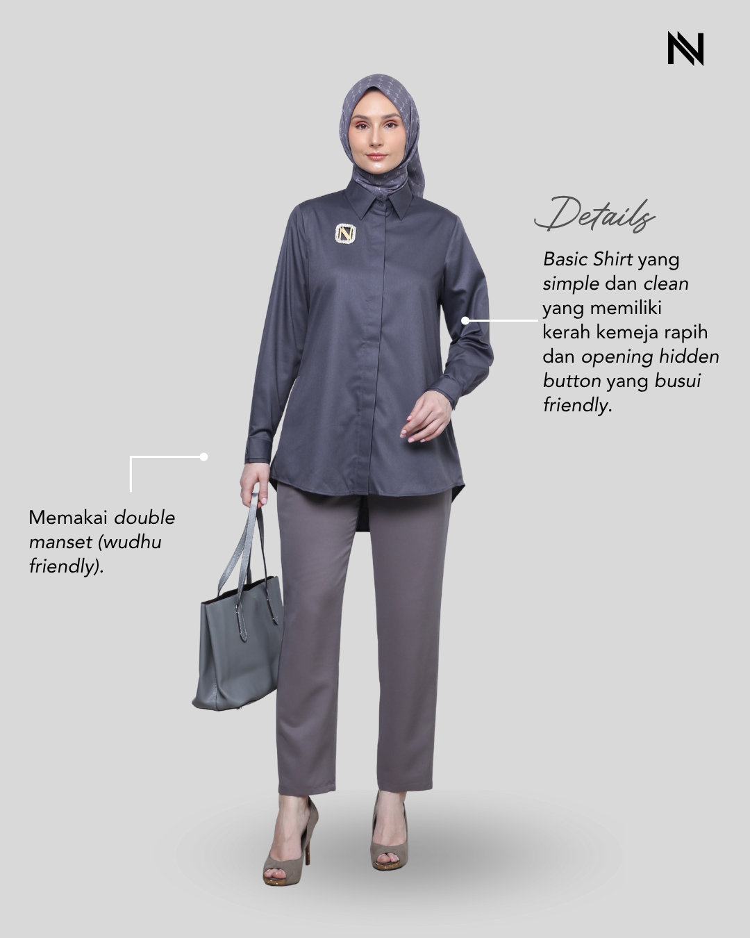 Basic Shirt menjadi pilihan sempurna untuk gaya kerja yang smart dan effortless. Namun, ia juga tetap cocok untuk tampilan santai yang chic saat dipadukan dengan aksesori casual. Tidak lupa dengan sentuhan aksesoris rectangle brooch dari koleksi Nina Nugroho sebagai pelengkap busana Anda.